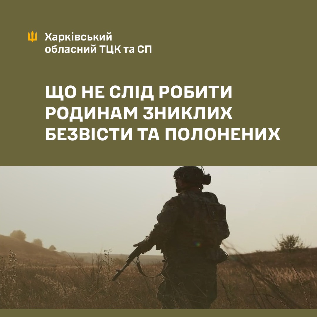 По-друге, категорично не рекомендується передавати стороннім особам персональні або чутливі дані, зокрема ПІБ військовослужбовця, номер чи назву військової частини або підрозділу, локацію та обставини зникнення, фотокопії документів, банківські реквізити чи дані платіжних карток.