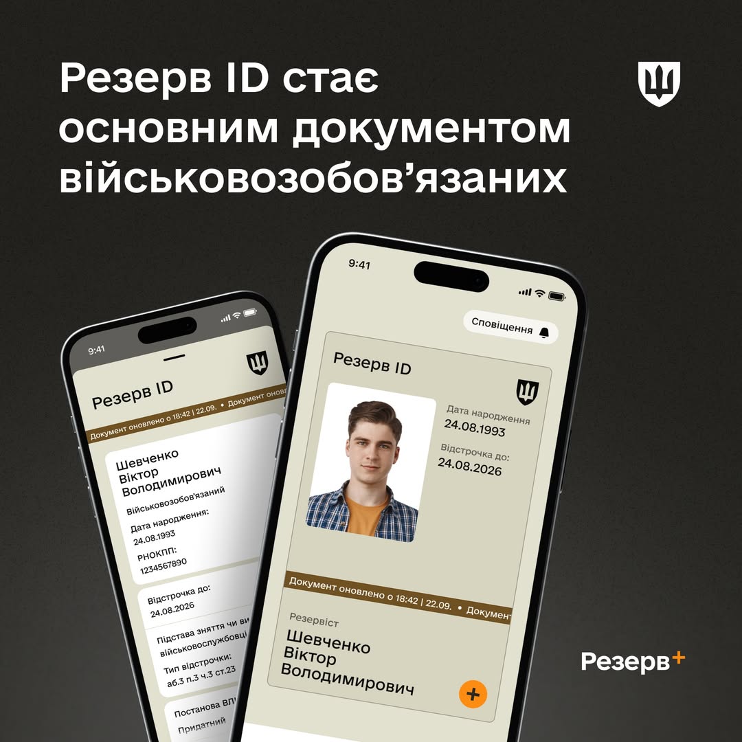 Це означає, що Резерв ID у застосунку Резерв+ стає основною формою документа для призовників, військовозобов’язаних і резервістів.