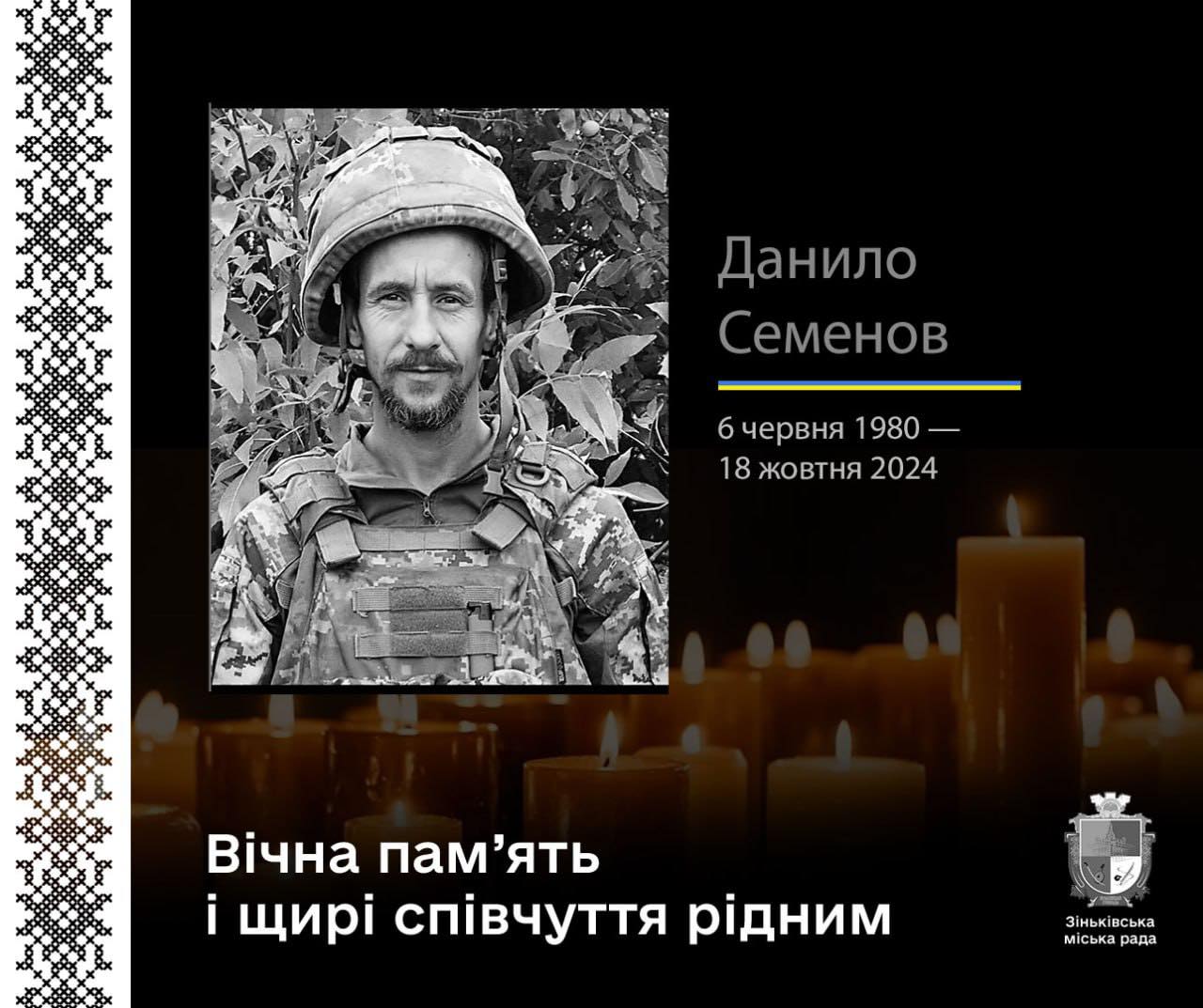 🕯️ У зв’язку із загибеллю у російсько-українській війні Семенова Данила Андрійовича 7 січня у Зіньківській громаді оголошено День жалоби.