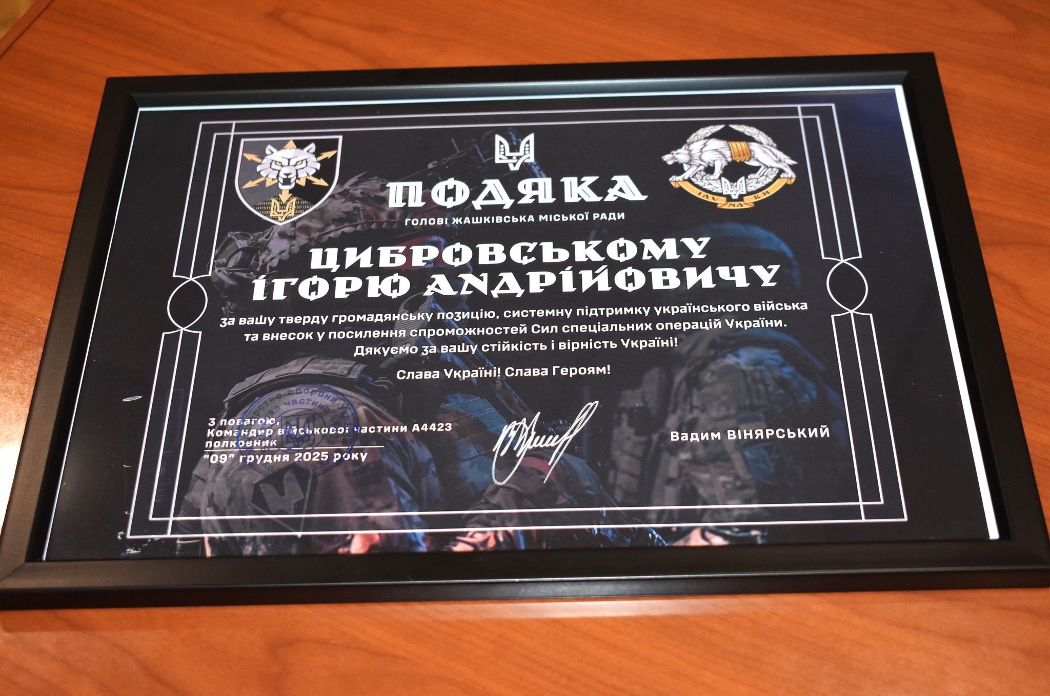 💬«Такі відзнаки – це знак довіри та вдячності від тих, хто сьогодні стоїть на передовій. Вони є свідченням того, що фінансова допомога Жашківської громади доходить до адресатів і відіграє важливу роль у спільній боротьбі. Як і в цьому році, так і в наступному концентруватимемося на підтримці оборонців України, завдяки яким живемо, працюємо та рухаємо громаду вперед.» – прокоментував 👤Ігор Цибровський.