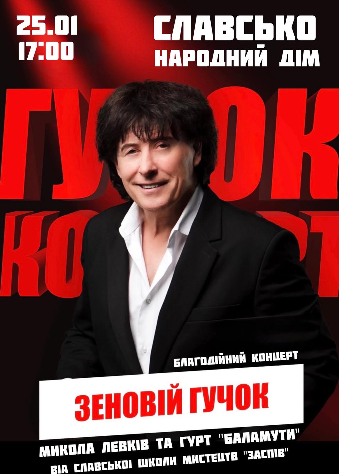 25 січня у Народному домі селища Славсько— благодійний концерт із Зеновієм Гучком 💙 Чекаємо кожного! 🫶🏻