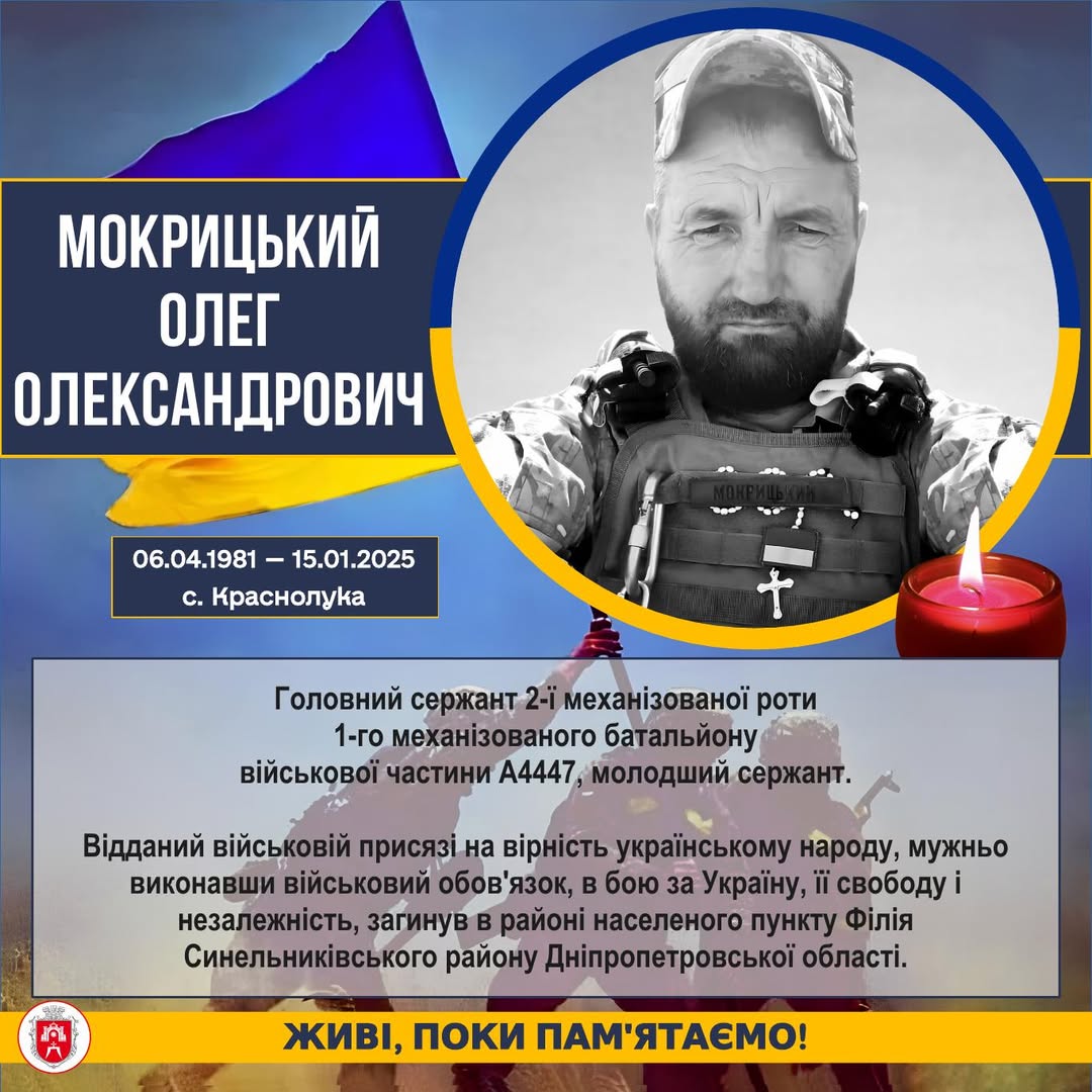 Сьогодні, 15 січня, минає річниця від дня загибелі Героя Олега Мокрицького.