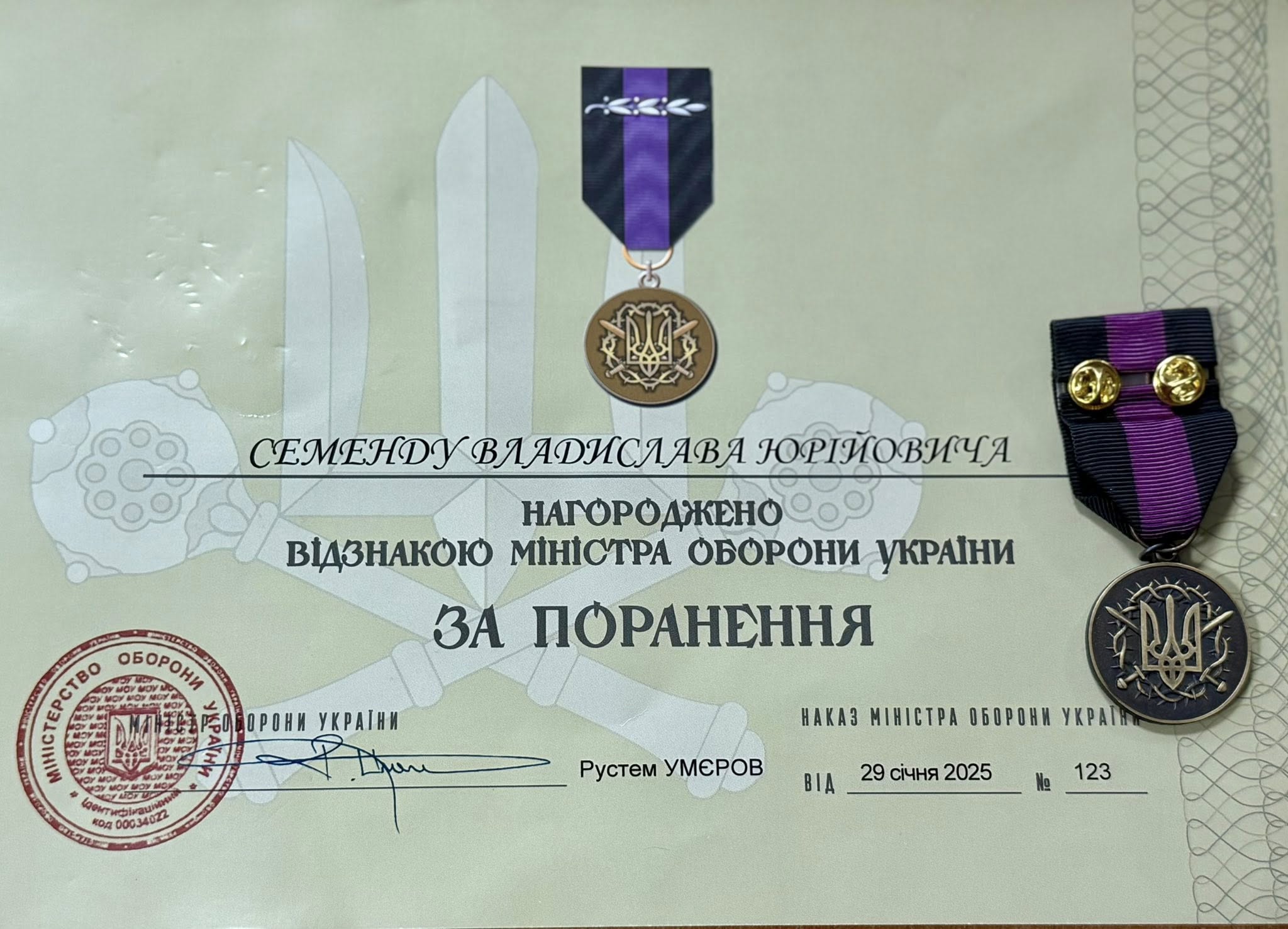 Міський голова Микола Наконечний вручив відзнаку Міністерства оборони України «За поранення» жителю м. Христинівка, Захиснику України — Семенді Владиславу Юрійовичу.