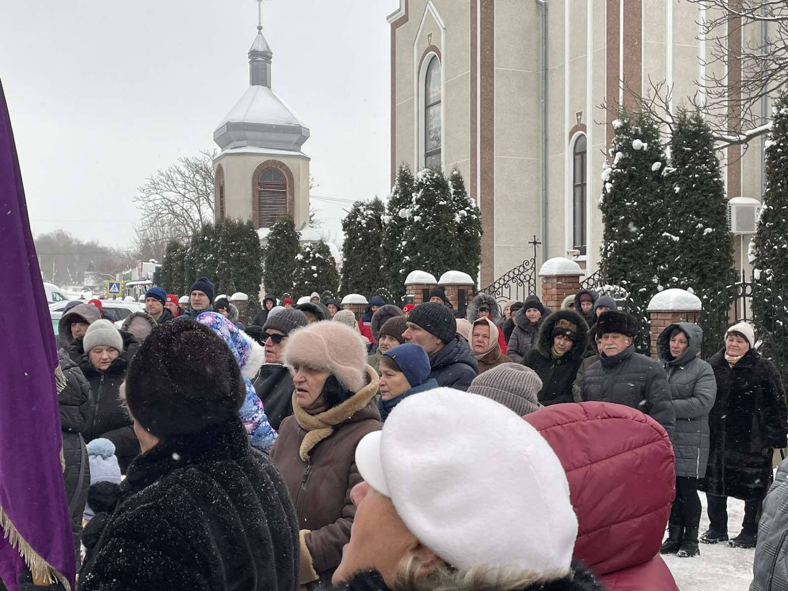 Жителі Борщівської громади на колінах з державними прапорами зустріли та провели до похоронного храму кортеж із тілом загиблого Героя, захисника України Олександра МІСЬКИ, жителя міста Борщева.