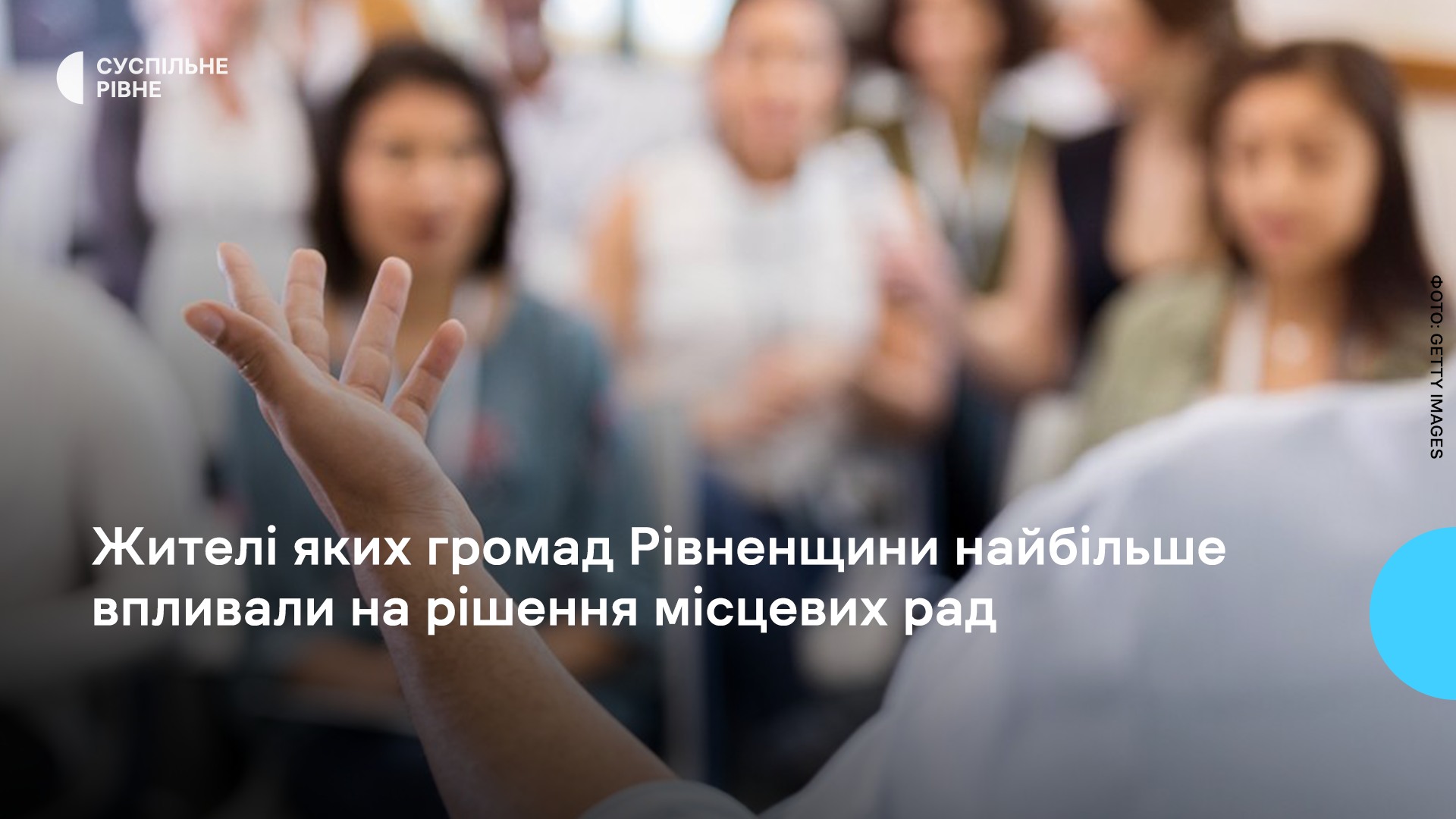 Жителі Корецької, Рокитнівської, Дубенської, Білокриницької та Антонівської громад Рівненщини мали найвищий рівень впливу на ухвалення рішень на місцях за 2024 рік.