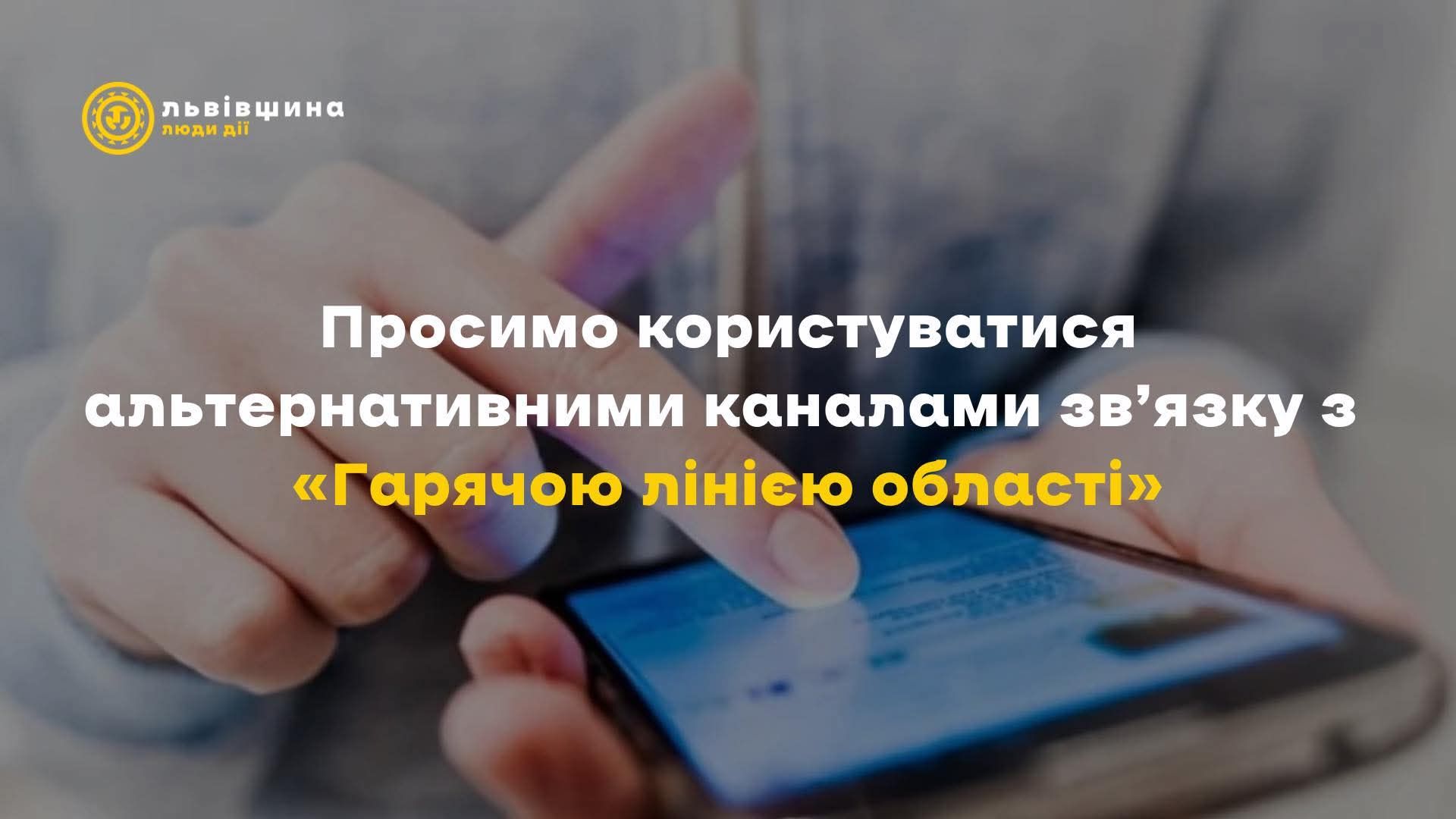 З метою забезпечення зручного та оперативного зв’язку з органами виконавчої влади рекомендуємо користуватися альтернативними каналами комунікації, зокрема чат-ботами «Гарячої лінії області».