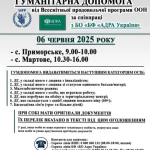 До уваги жителів сіл Мартове та Приморське!