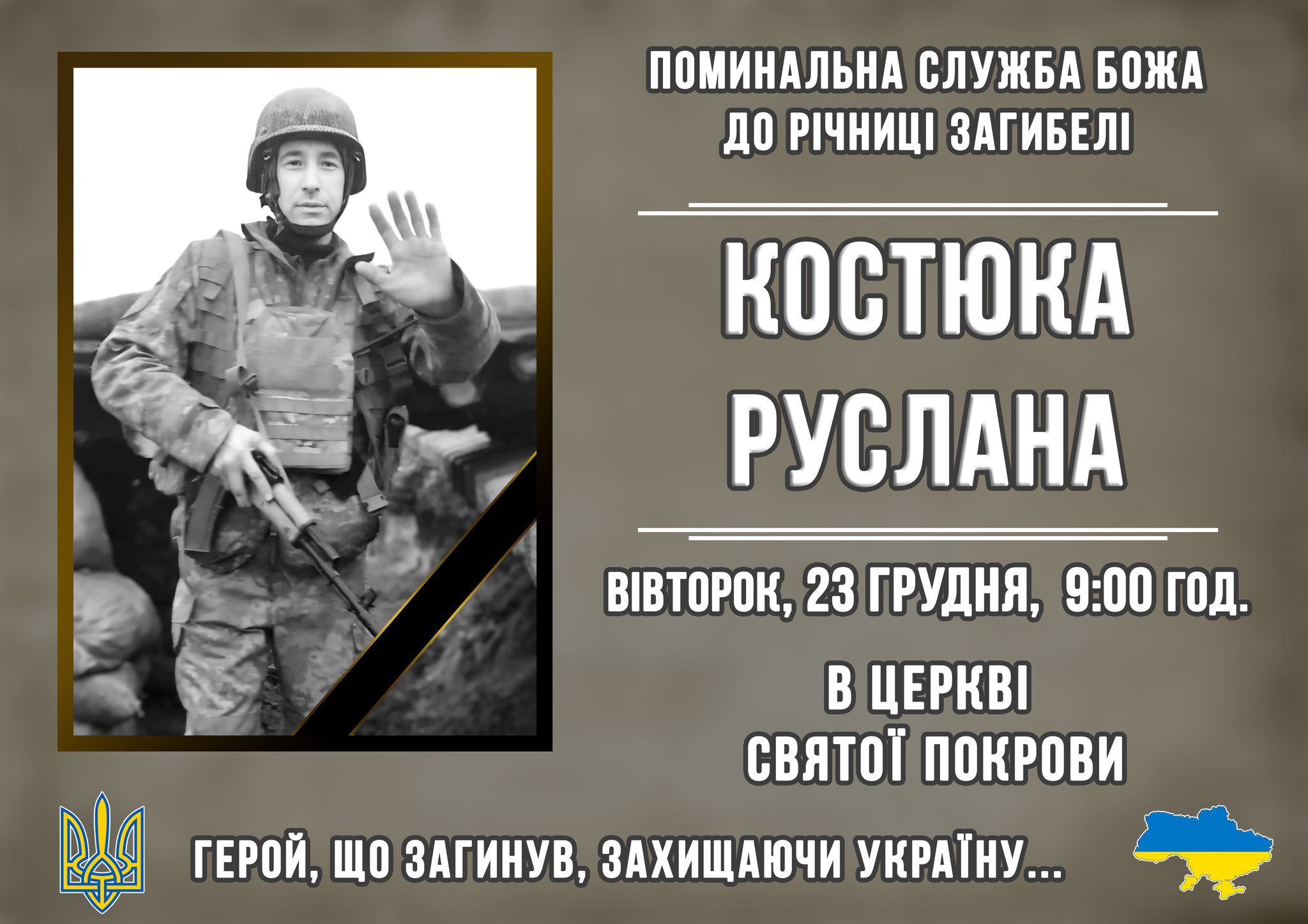 ЗАПРОШУЄМО ДОЛУЧИТИСЯ ДО ДО СПІЛЬНОЇ МОЛИТВИ ЗА УПОКІЙ ДУШІ ГЕРОЯ КОСТЮКА РУСЛАНА