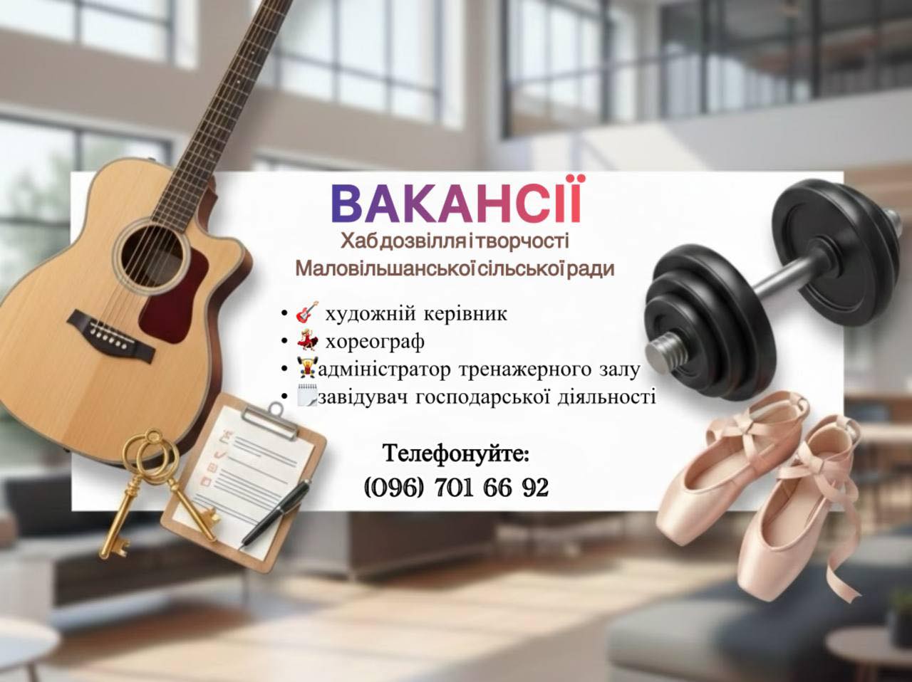 Хаб дозвілля і творчості Маловільшанської сільської ради запрошує активних та креативних фахівців стати частиною нашої дружньої родини!