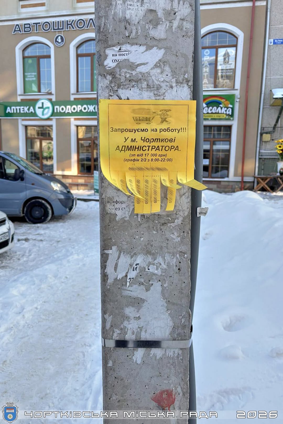 Розміщення оголошень, інформаційно-агітаційних плакатів, реклами, листівок, інформаційно-довідкових матеріалів тощо у невстановлених для цього місцях заборонено відповідно до «Правил благоустрою Чортківської міської територіальної громади».