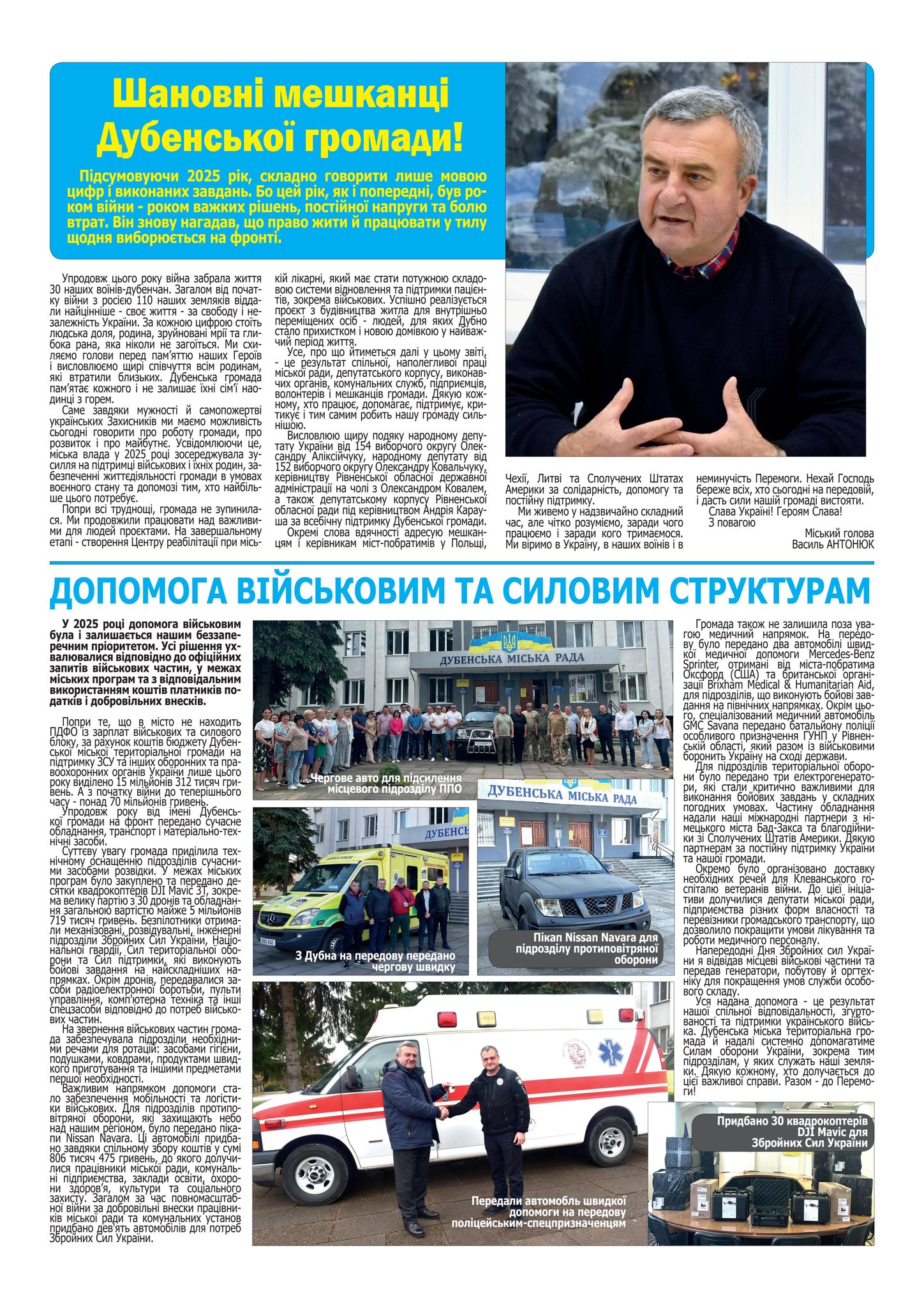 ЗВІТ МІСЬКОГО ГОЛОВИ ВАСИЛЯ АНТОНЮКА ЗА 2025 РІК