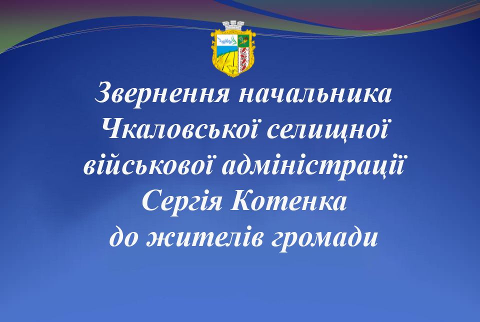 ЗВЕРНЕННЯ НАЧАЛЬНИКА ЧКАЛОВСЬКОЇ СЕЛИЩНОЇ ВІЙСЬКОВОВЇ АДМІНІСТРАЦІЇ СЕРГІЯ КОТЕНКА
