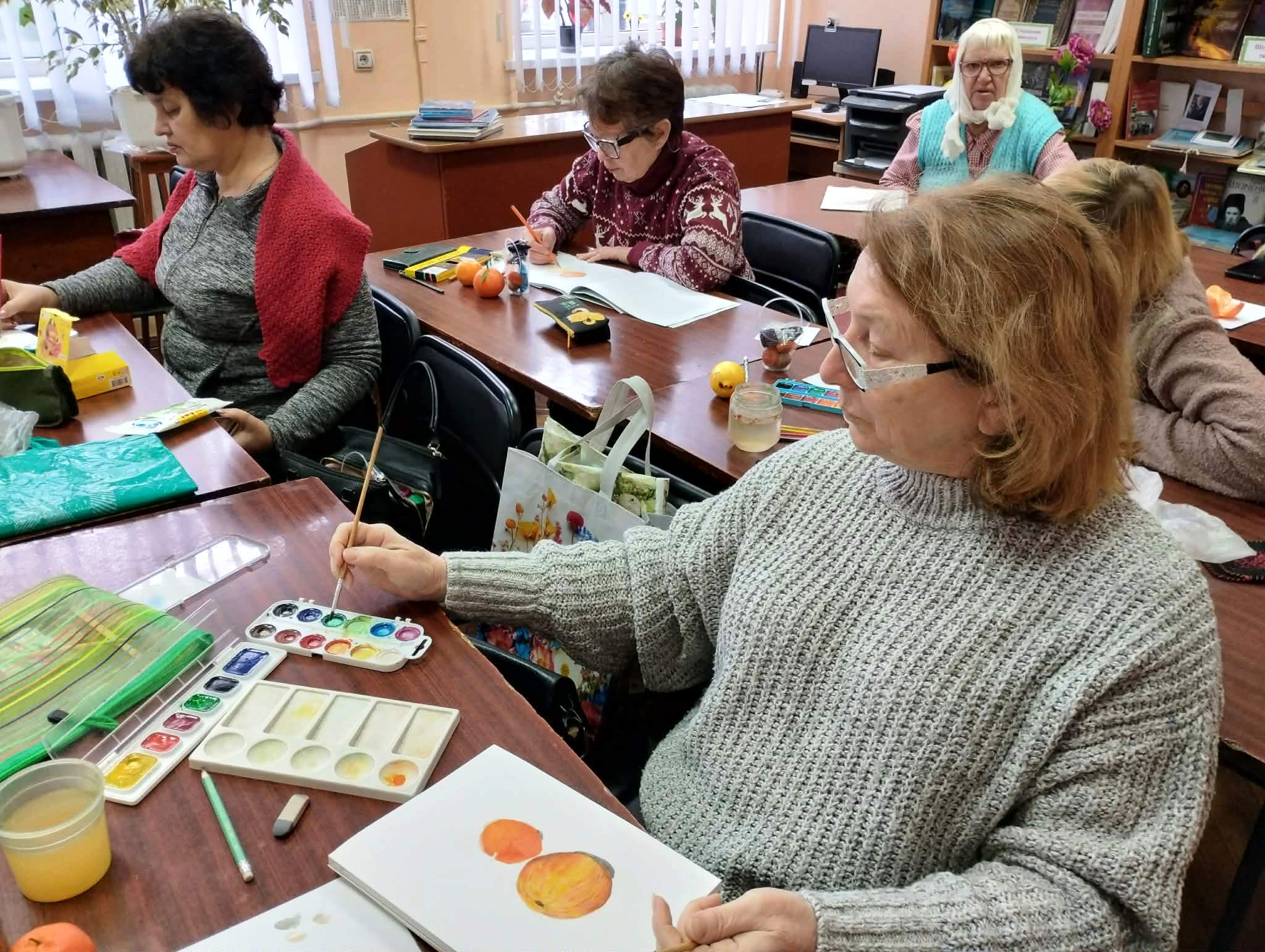 Вкотре аматорки пензля зібралися, щоб разом з художницею бібліотеки Катериною Смирновою занурилися в світ живопису та помаранчового настрою.
