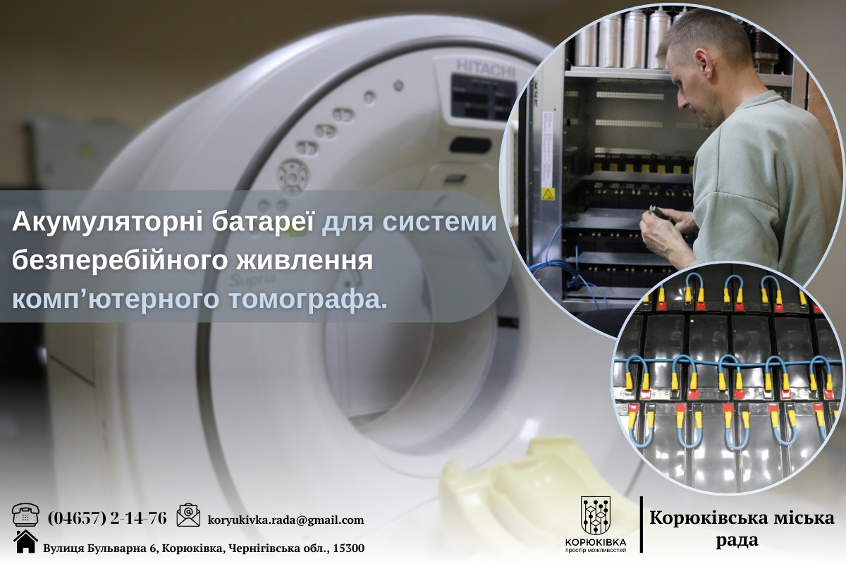 Завдяки тісній співпраці з Благодійний фонд «Зелений Кристал», Корюківська лікарня отримала 180 акумуляторних батарей для системи безперебійного живлення комп’ютерного томографа.🔋