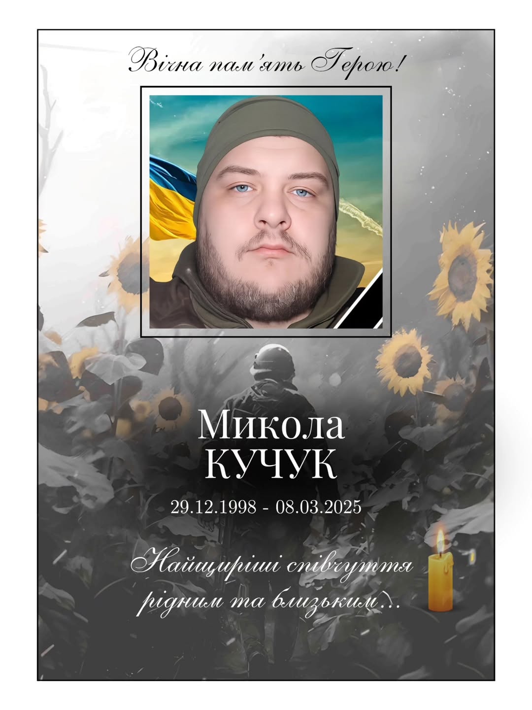 Підтвердилась загибель солдата ЗСУ Миколи Сергійовича КУЧУКА, уродженця села Новоселидівка Покровського району Донецької області, 1998 р.н., який вважався безвісти зниклим з березня 2025 року.