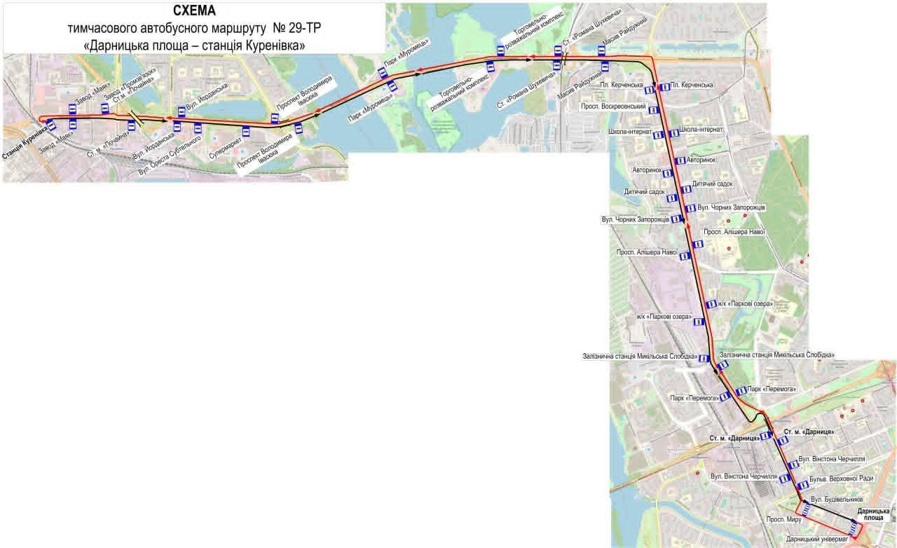 29тр – Дарницька пл. – Зал. ст. “Куренівка”;