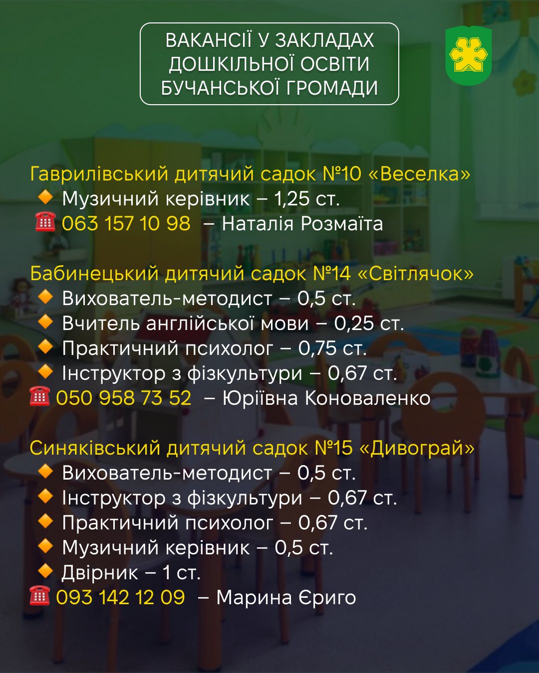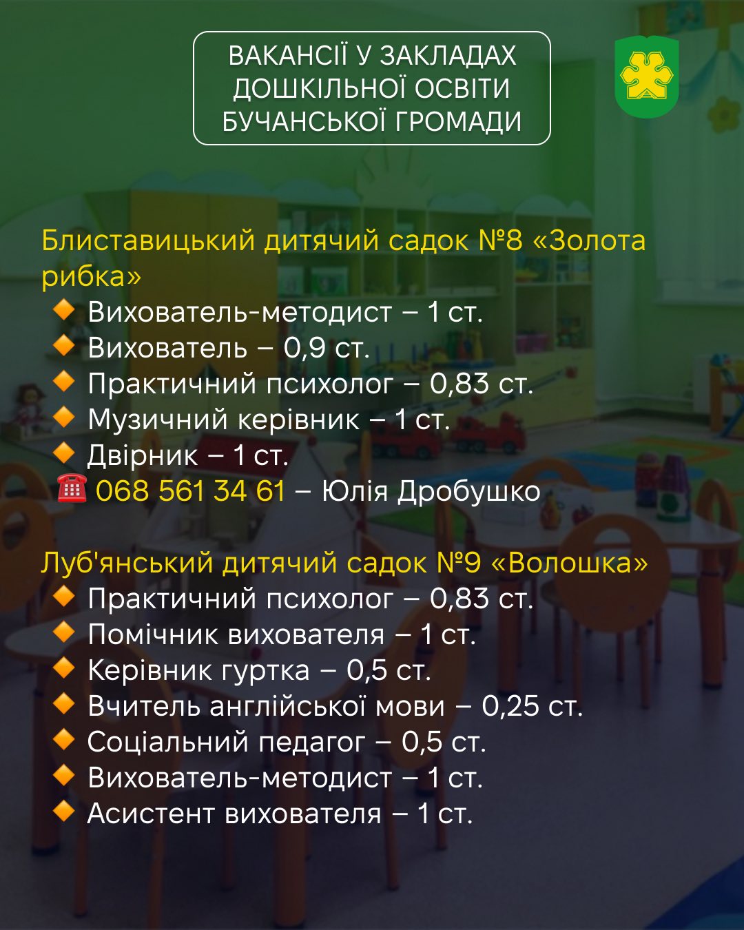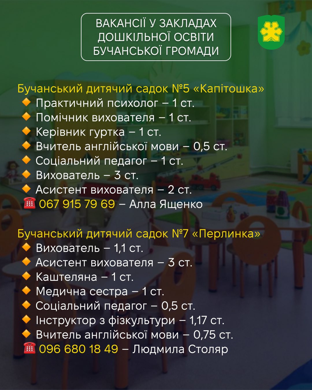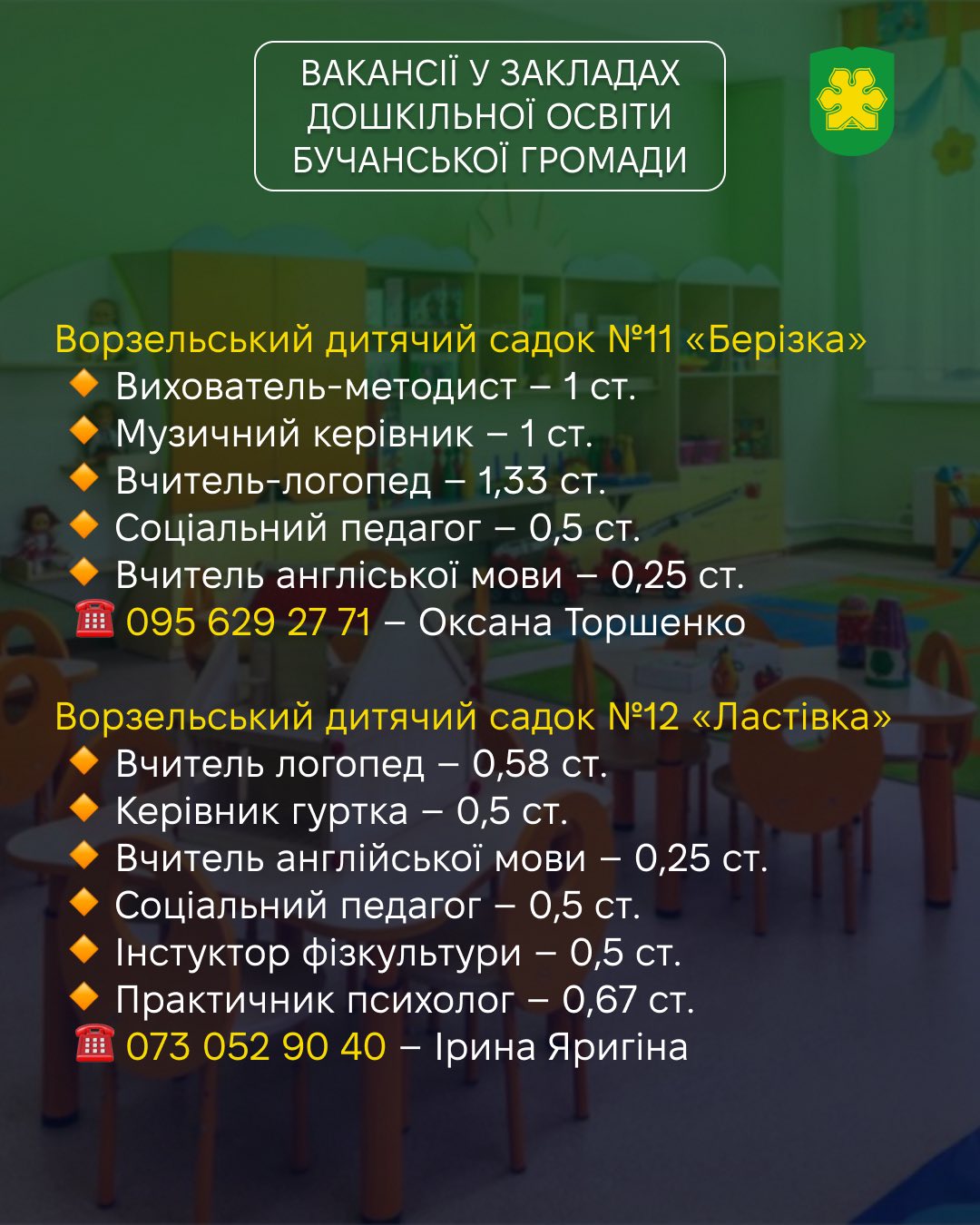 👶🏻 Заклади дошкільної освіти Бучанської громади запрошують фахівців у свою команду!