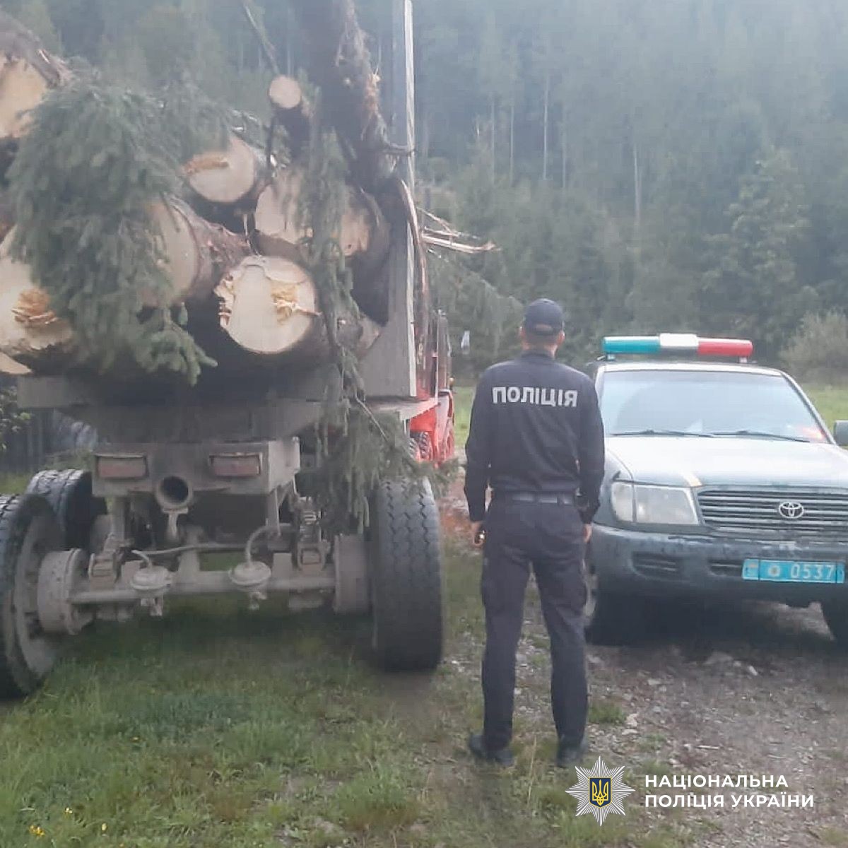 Перед цими фактами — перевезення крадених колод (на фото) і неоформлення ОВА і ДПЛУ земельних ділянок, на яких зростає і крадеться високоякісний лісовий ресурс, — пасує і обласна прокуратура.