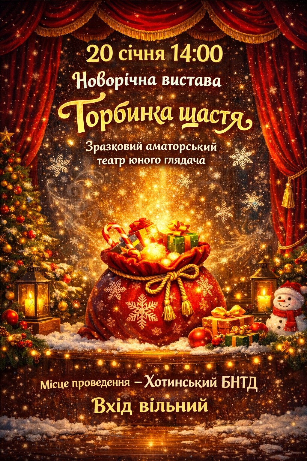 Запрошуємо дітей Хотинської громади та їхніх батьків на зимову виставу «Торбинка щастя»!