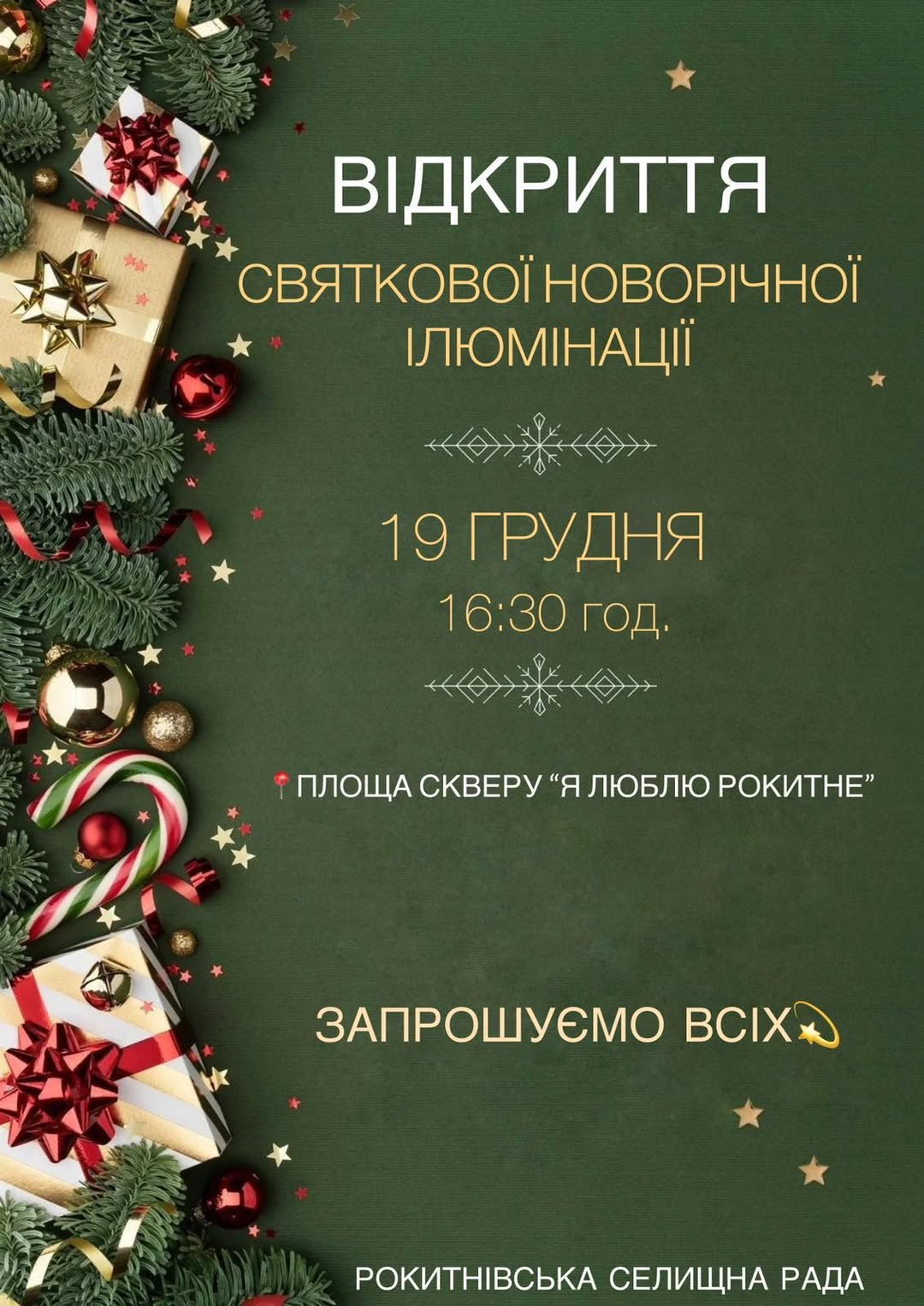 ❄️ Запрошуємо жителів та гостей громади на відкриття святкової новорічної ілюмінації ✨