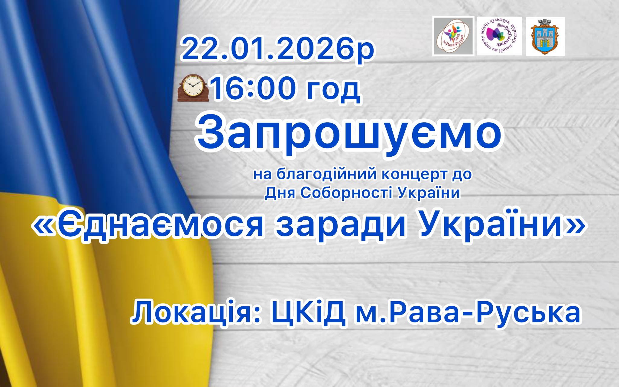 Запрошуємо жителів та гостей громади долучитися до благодійного концерту з нагоди Дня Соборності України! 🇺🇦