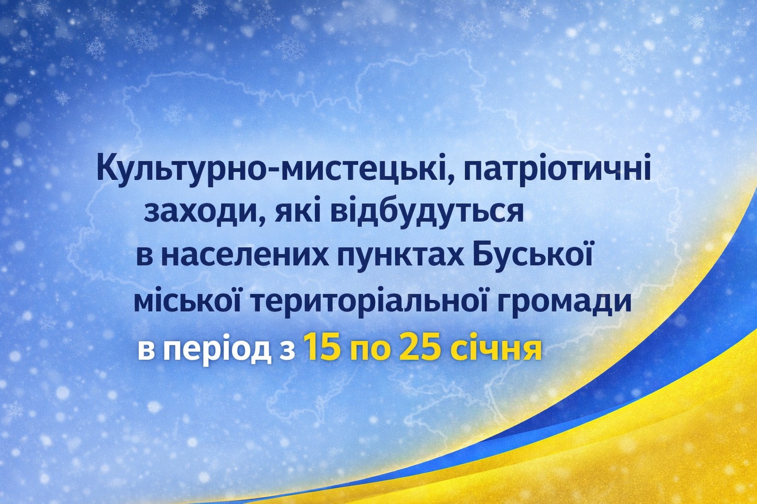 🎄 Запрошуємо мешканців громади долучитися до заходів, які відбуватимуться в Народних домах – філіях Буського МНД та у м. Буськ у період з 15 по 25 січня 2026 року.