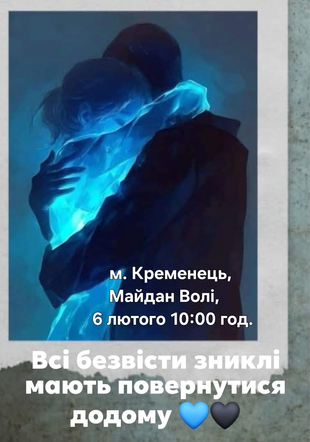 Запрошуємо мешканців громади 6 лютого 2026 року о 10:00 год. прийти й підтримати родини безвісти зниклих та тих, хто перебуває в полоні.💔
