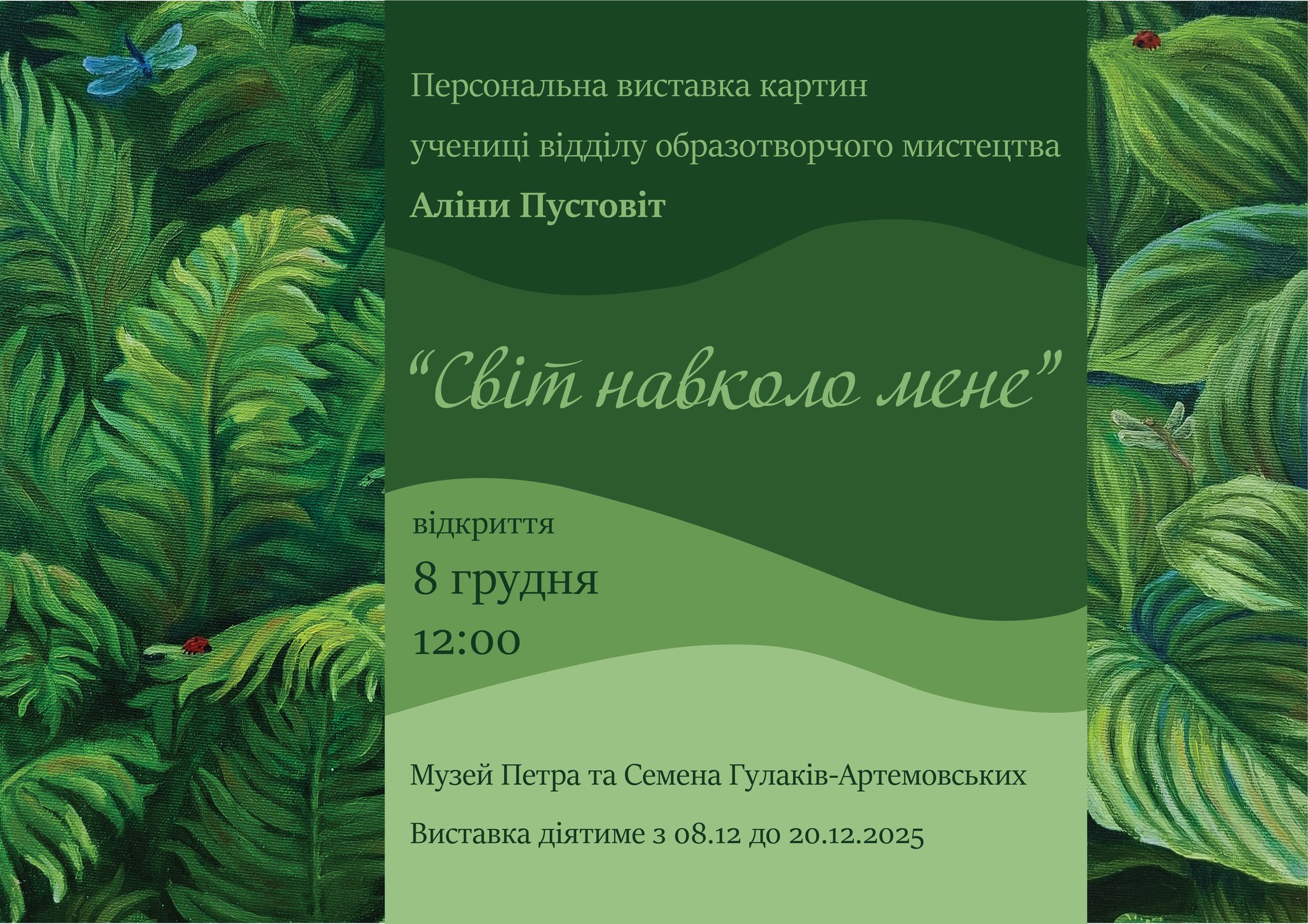 Щиро запрошуємо всіх поціновувачів мистецтва підтримати талановиту молодь та надихнутися красою «світу навколо нас» очима Аліни Пустовіт! 🌿🎨