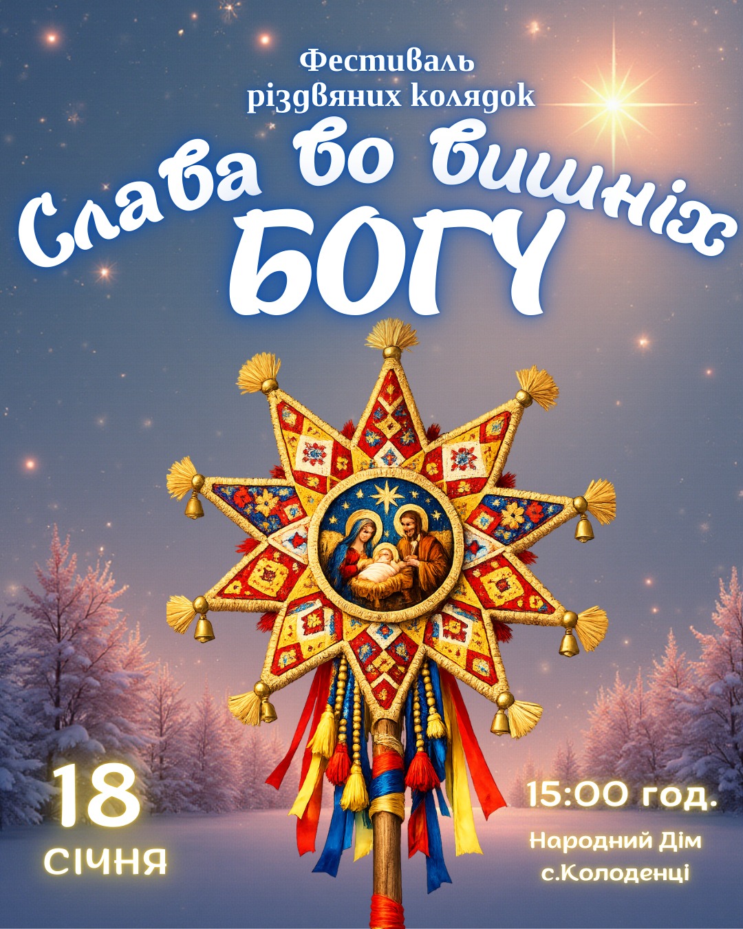 🎼 Запрошуємо усіх на благодійний фестиваль різдвяних колядок “Слава во вишніх Богу”, що традиційно відбудеться в селі Колоденці у неділю, 18 січня, о 15:00 год.