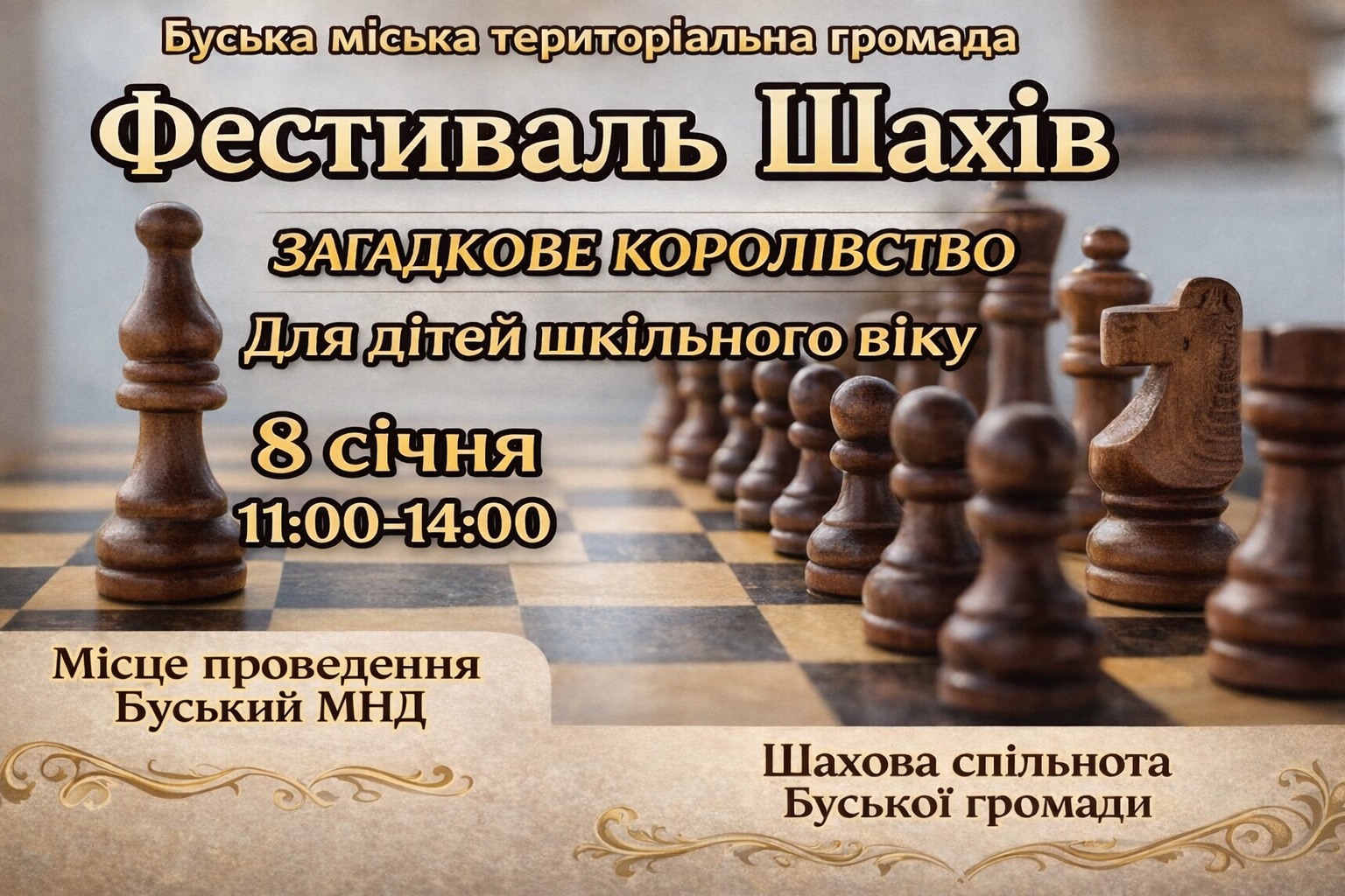 Буська міська територіальна громада запрошує дітей шкільного віку на Фестиваль шахів “Загадкове королівство”.