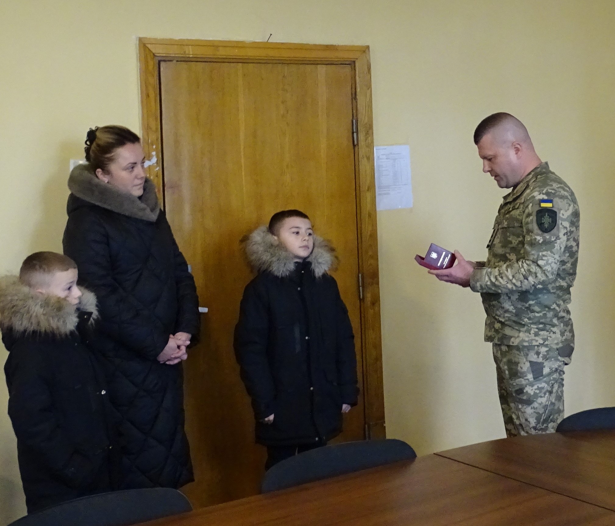 Заступник начальника 27 Мукачівського прикордонного загону ім. Героїв Карпатської Січі, полковник Олександр Гладкий та керівництво Виноградівської міської ради сьогодні, 29 грудня 2025 р., вручили відзнаку Президента України – медаль «Захисник Вітчизни» (посмертно) дружині полеглого Героя – Юлії Любці та двом синам.