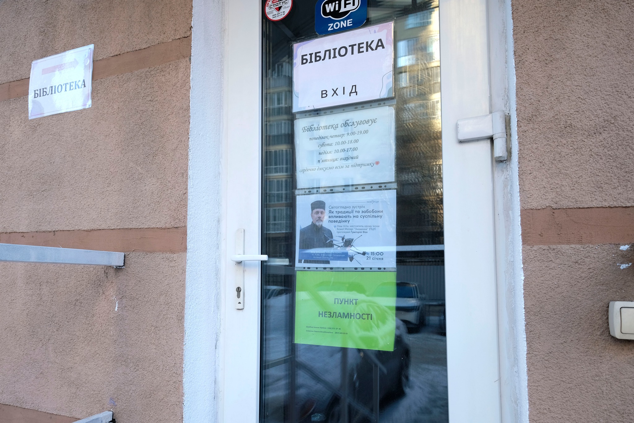 У бібліотеці забезпечено автономне електроживлення, є можливість підзарядити мобільні телефони, для відвідувачів передбачені гарячий чай, вода та необхідні зручності. Заклад залишається важливим місцем підтримки для мешканців прилеглих будинків у складних умовах.