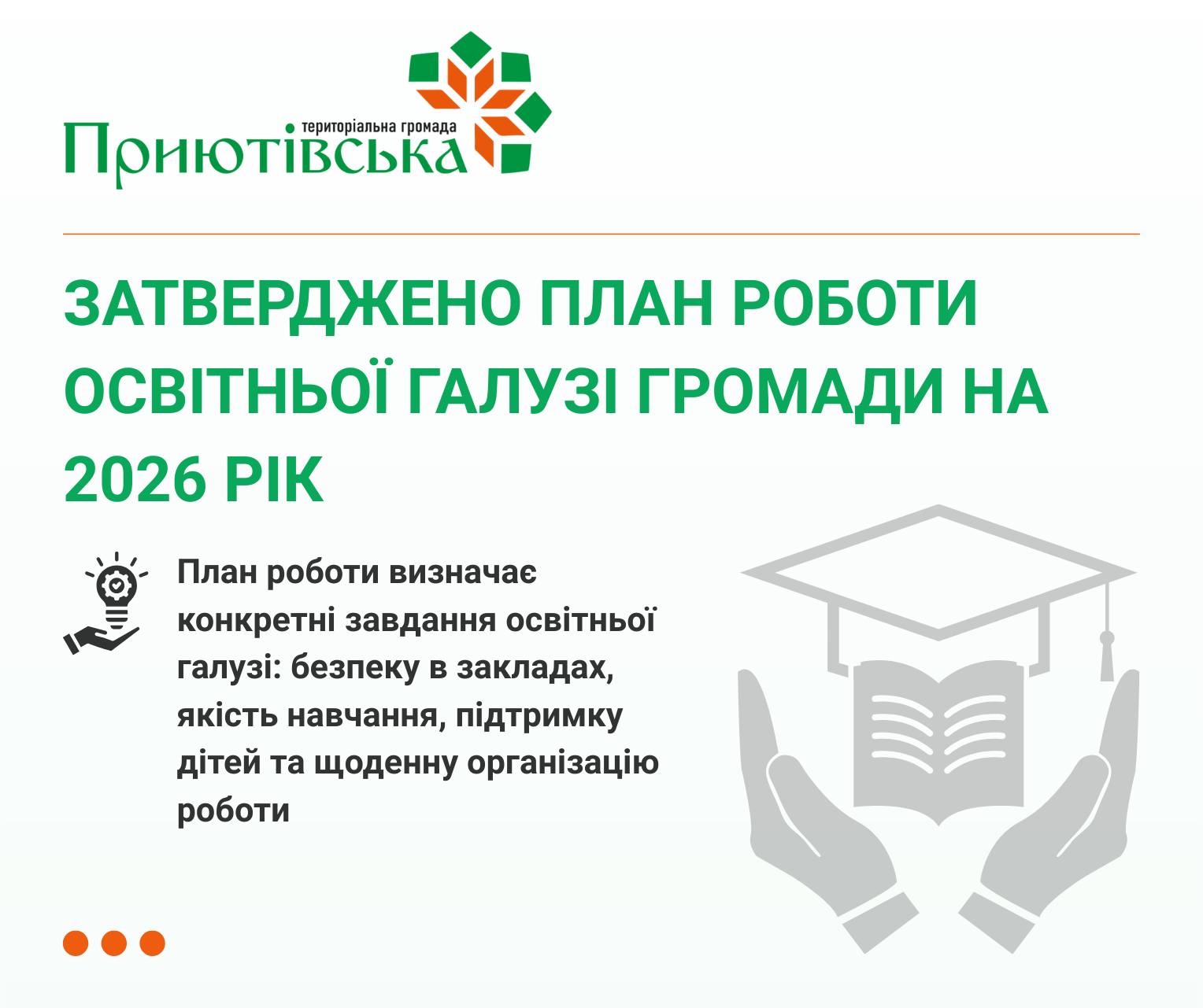 Затверджено план роботи Відділу освіти, молоді та спорту Приютівської селищної ради на 2026 рік. Це не формальність і не перелік намірів, а робочий документ, який визначає, за що саме відповідатиме галузь упродовж року.