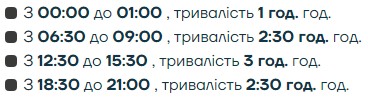 Упродовж доби графік може змінюватись, також енергетики можуть застосовувати аварійні відключення!