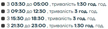 Упродовж доби графік може змінюватись, також енергетики можуть застосовувати аварійні відключення!