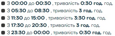 Упродовж доби графік може змінюватись, також енергетики можуть застосовувати аварійні відключення!