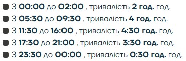 Упродовж доби графік може змінюватись, також енергетики можуть застосовувати аварійні відключення!