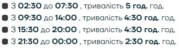 Упродовж доби графік може змінюватись, також енергетики можуть застосовувати аварійні відключення!