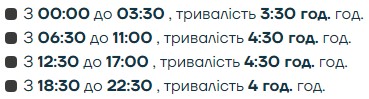 Упродовж доби графік може змінюватись, також енергетики можуть застосовувати аварійні відключення!