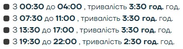 Упродовж доби графік може змінюватись, також енергетики можуть застосовувати аварійні відключення!