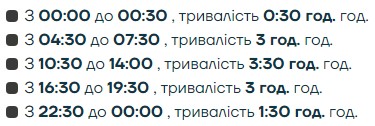 Упродовж доби графік може змінюватись, також енергетики можуть застосовувати аварійні відключення!