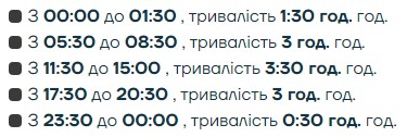 Упродовж доби графік може змінюватись, також енергетики можуть застосовувати аварійні відключення!