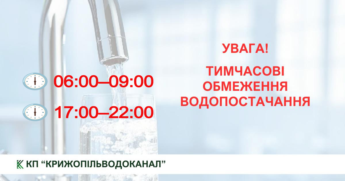 У зв’язку з цим подача води буде здійснюватися за тимчасовим графіком: