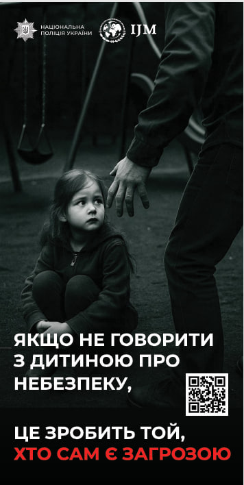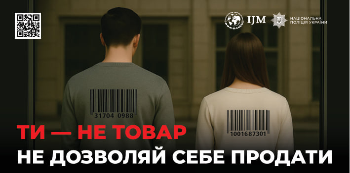 У рамках Меморандуму укладеного між Нацполіцією України, фондом «International Justice Mission» та Департаментом міграційної поліції підготовлено просвітницькі матеріали, спрямовані на підвищення обізнаності населення щодо проблематики торгівлі людьми та експлуатації дітей – на яких міститься QR-код на вебресурс – stoptraffic.com.ua
