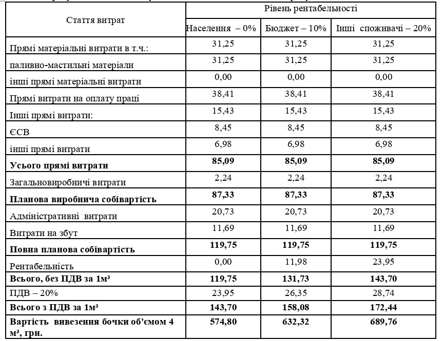 У зв’язку з цим чинна раніше калькуляція не покривала фактичні витрати на надання послуги з вивезення рідких побутових відходів.