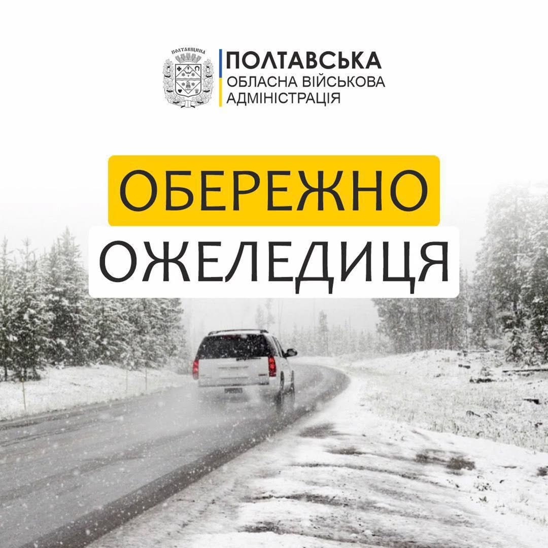За інформацією Полтавського обласного центру з гідрометеорології, 4 січня 2026 року на дорогах області й у Полтаві очікується ожеледиця.