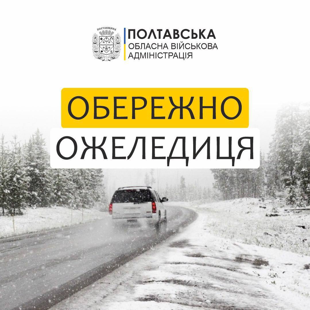 За інформацією обласного центру з гідрометеорології, впродовж доби 02 лютого в південно-східній частині Полтавської області – ожеледь, на дорогах – ожеледиця.