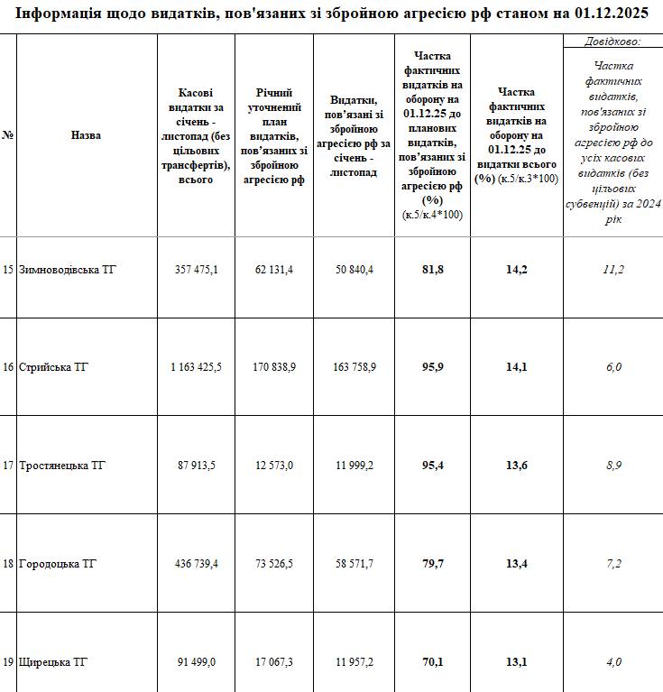 Водночас у низці громад Львівщини частка оборонних видатків стабільно залишається критично низькою: