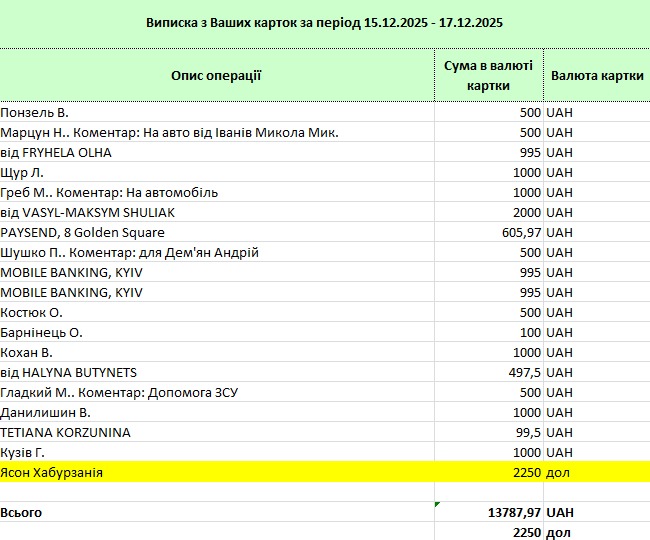 – З 15 по 17 грудня спільними зусиллями зібрали ще 13 788 грн