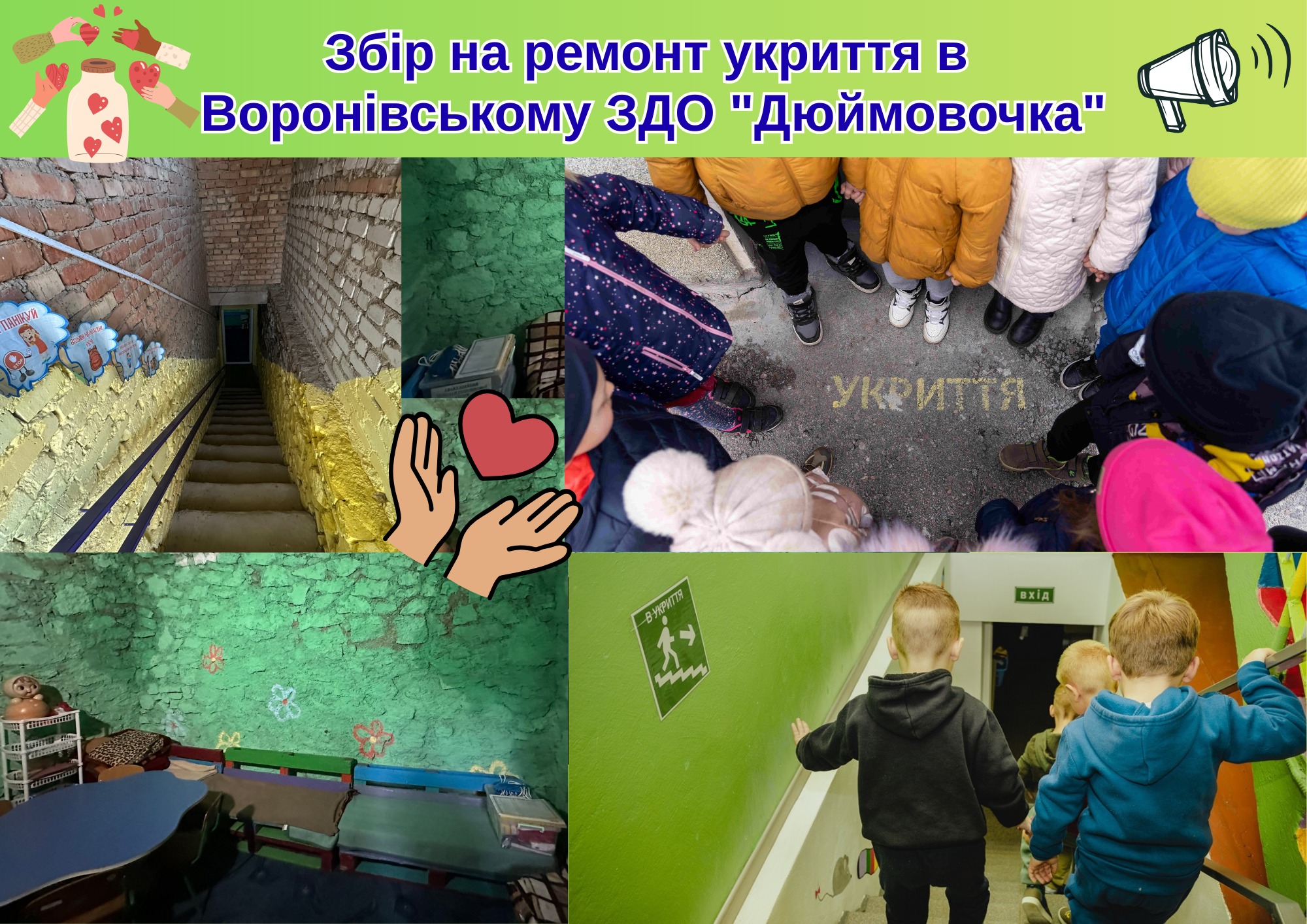 International Charity Fund «Angels of Freedom» відкрили благодійний збір на ремонт укриття Воронівського закладу дошкільної освіти «Дюймовочка» у селі Воронівка та вже зробили перший внесок — 50 000 грн 💛